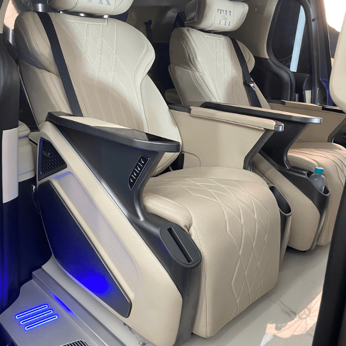 - Cặp ghế Limousine Cast 3 hàng nhập khẩu 100% từ chính hãng sản xuất ghế, được làm từ khung bằng thép không gỉ, mút được khuôn cao cấp, bọc da nappa cao cấp. Ghế có các tính năng sạc không dây, chỉnh điện trượt tới lui/ ngã tựa lưng/ nâng hạ chân, massage bơm hơi, ngã không trọng lực, quạt mát lưng & sưởi ghế được tích hợp vào màn hình điều khiển cảm ứng, có công tắc phụ. Ghế có hộp bảo vệ điện, bộ dây cấp điện.